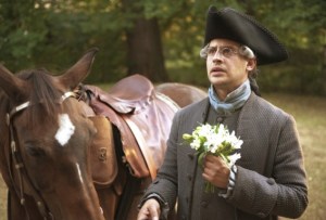 But unbeknownst to the future poet, she also is being courted by Goethe’s boss and new friend Kestner (Moritz Bleibtreu), who is as shy and tongue-tied as Goethe is clever and articulate. (There’s a bit of “Cyrano” being recycled here as well.)