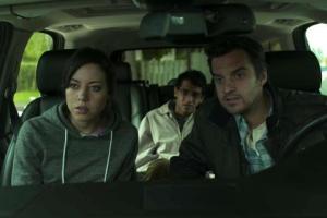 Jake brings along as his assistants two of the magazine’s summer interns. One is a dweeby Indian-American computer geek named Arnau (Karan Soni) who only took the gig because his college resume needs some diversity. The other is Darius (Aubrey Plaza), a confirmed pessimist and cynic. She’s a sullen, sarcastic wraith in Goth Girl black.
