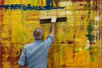 Belz had her work cut out for her, for Richter is notoriously reluctant to say much about himself or his work. Oh, he’s affable enough, an amazingly trim and vital fellow who looks and acts 20 years younger than his actual age and who with his latest works turns painting into an act of great physicality.
