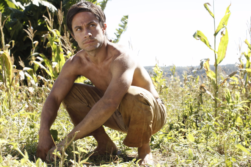 We first seen Bernal rising from a jungle river deep in the Argentine interior…he looks like some sort of primordial spirit. Actually, he’s a farmer named Kai who has survived the burning of his homestead and the murder of his family by gun-toting goons.