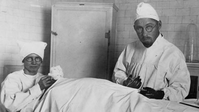 The real John Brinkley…preparing to transplant goat testicles to a human patient