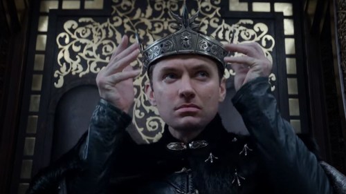 In a prologue the kingdom of Uther Pendragon (Eric Bana) is seized during a great battle (war elephants the size of battleships…in England) by his scheming brother Vortigern (a sneering Jude Law, who portrays Watson in Ritchie’s Holmes franchise).