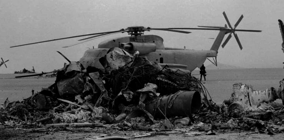 Wreckage of U.S. aircraft in wake of failed Iran hostage rescue