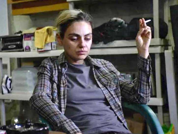 Moreover, Kunis’ physical transformation — Molly looks like a walking corpse and talks with her hand in front of her mouth because she’s lost most of her teeth — is excruciating. She radiates shame and desperation.