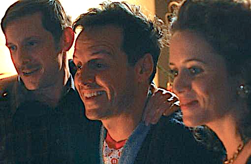 One day Adam boards a train and gets off in a suburb where he is reunited with his parents (Jamie Bell and Claire Foy)…an impossibility since (a) Mom and Dad appear to be the same age as their son and (b) we have already learned from Adam’s conversations with Harry that his parents died in a car crash when he was a young teen.