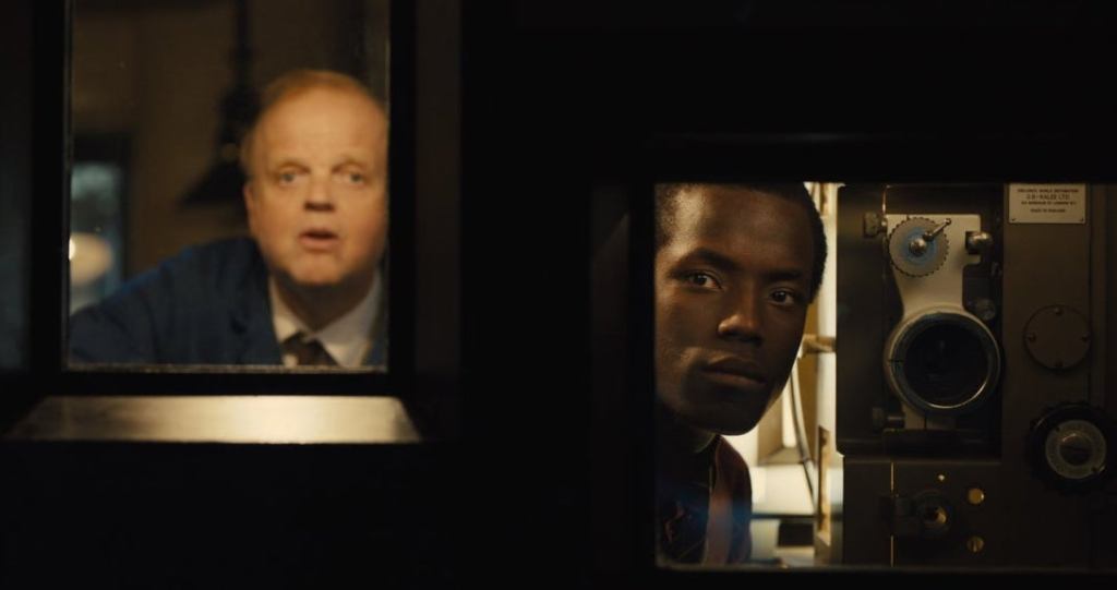 Except that it never materializes here. The closest we get are scenes with the semi-reclusive projectionist (Toby Jones, predictably great) who takes newcomer Stephen under his wing to explain the workings of the booth; clearly the man is obsessed with the whole cinematic process.