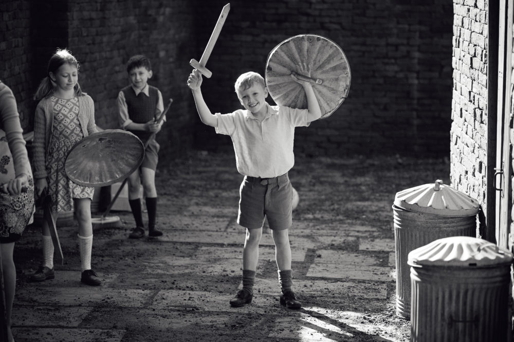 The year is 1969 and cinematographer Haris Zambarloukos’ camera wanders breathlessly among the denizens of a bustling residential street. At the center of the action is 9-year-old Buddy (Jude Hill), all freckles, buck teeth and peach fuzz. He’s an explosion of youthful energy, slaying invisible dragons with a wooden sword.