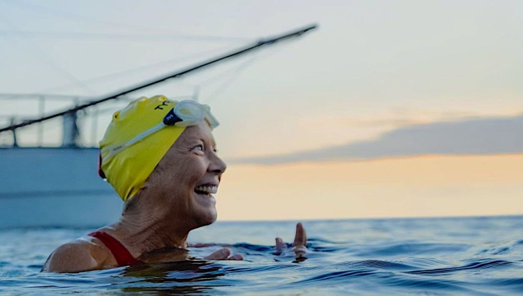 Scripted by Julia Cox (from Nyad’s book Find a Way) and directed by Jimmy Chin and Eliizabeth Chai Vasarhelyi, this,is a slow buildup to Nyad’s 2013 master achievement, a 110-mile solo swim at age 60 (sans shark cages and resting raft) from Havana to Key West.